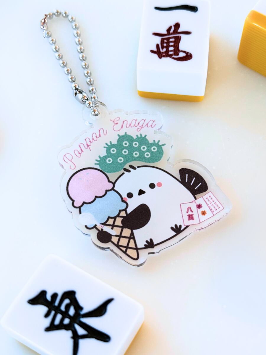 アイスと花柄が可愛い♪麻雀モチーフのポンポンエナガアクリルキーホルダー